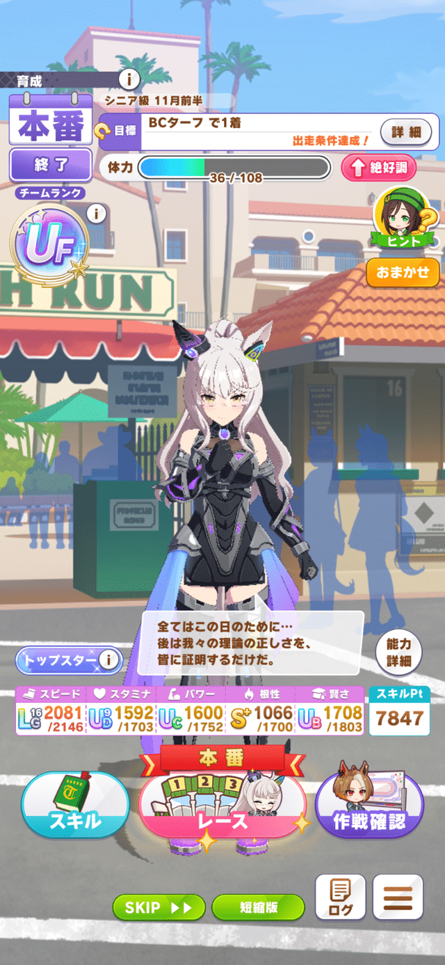 クロノ杯育成でシニア最後の3ターンなまけ癖で走らされたし