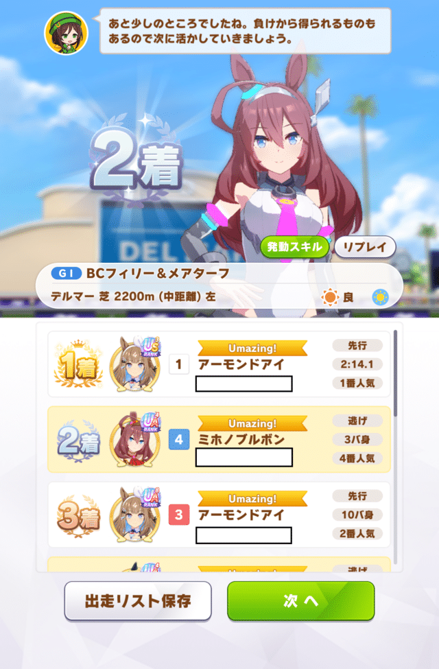 そういえば先手持ちの逃げウマおるけど問題なくユニ仕込めることに気づいたから逆にこのタイプはパワブルボンじゃなくてもいいって意味では選択肢は広がるかもなぁ