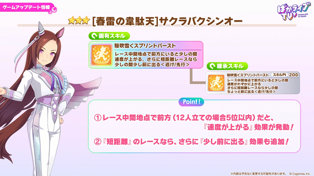 【ウマ娘】☆3育成ウマ娘新衣装「サクラバクシンオー」は自前加速有りの短距離特化!!次のLoHで活躍どころか完全に人権性能な模様