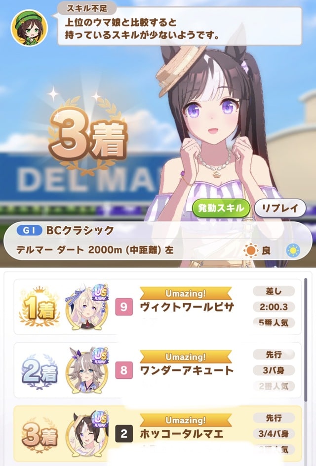 今回は最初のコーナーが中盤入ってしばらくしてからだからなー、固有に頼れんからスキルになる