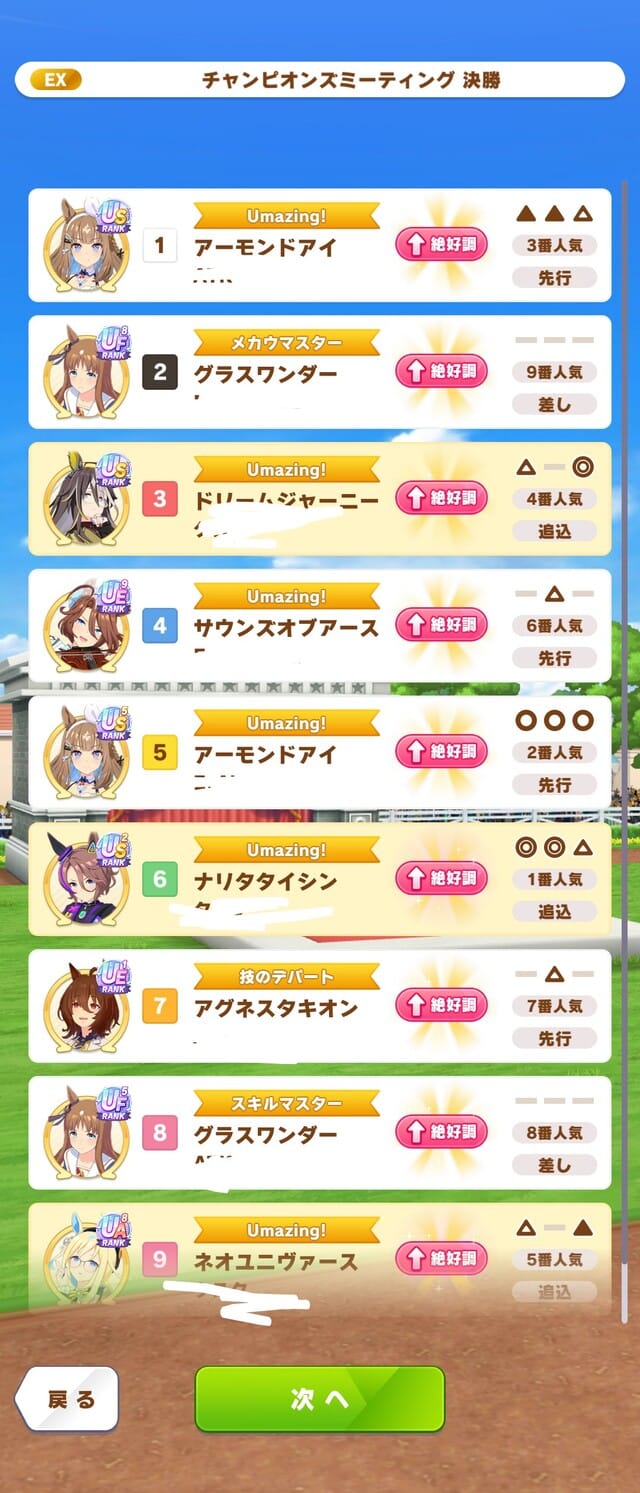 デバフとサポカのせいでひたすら前が有利なのがチャンミ