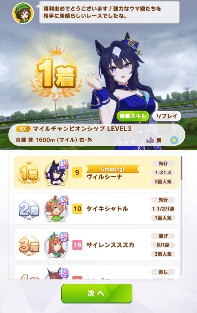なにこのタイキ序盤~中盤力おかしいだろ!?ってマイルLv3だけクリアできてなかったんですが、そういうことか…w