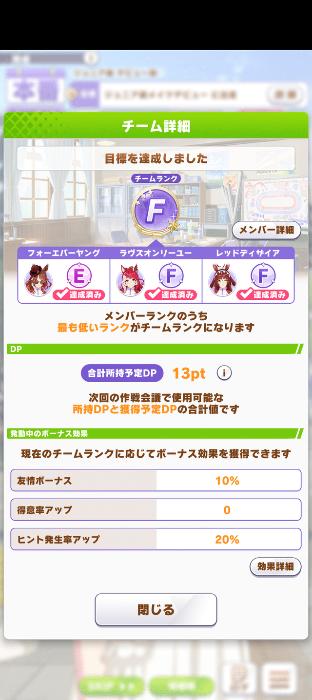 確認したDPと実際に目標ターンのイベントで獲得する表示DPが少なくて、「やらかした!?」って思わず思うことが今でもある。(事前の確認で表示される数値は所持DPとの合計なので)