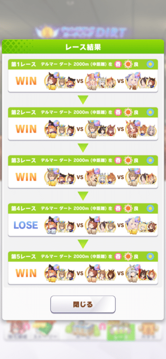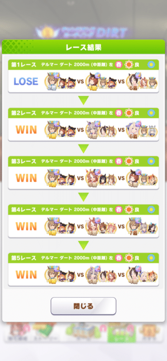 【ウマ娘】とあるトレーナーのラウンド1初日のマッチング結果から見る中距離チャンミDIRTの脚質分布(マッチング4回、計40名分)
