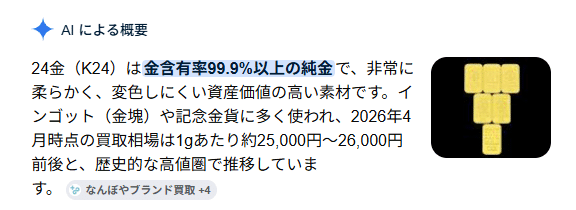 純金・24金)は、1gあたり約26,000円~27,000円台