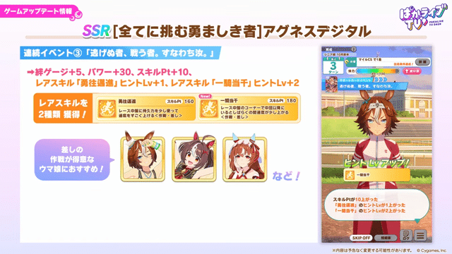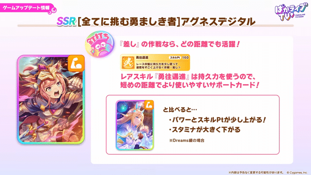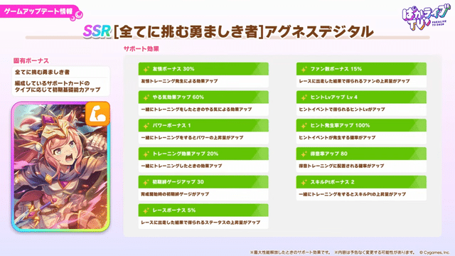 【ウマ娘】SSRサポカ「アグネスデジタル」は差し特化で距離は汎用型のパワータイプ!スキポ2ヒント5で白スキル多め、実質パワー版タクトかな?