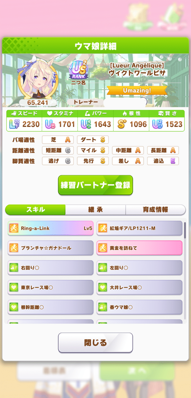 9馬身ついてるってことは多分根性育成でスタミナ全然足りてへんのやろな